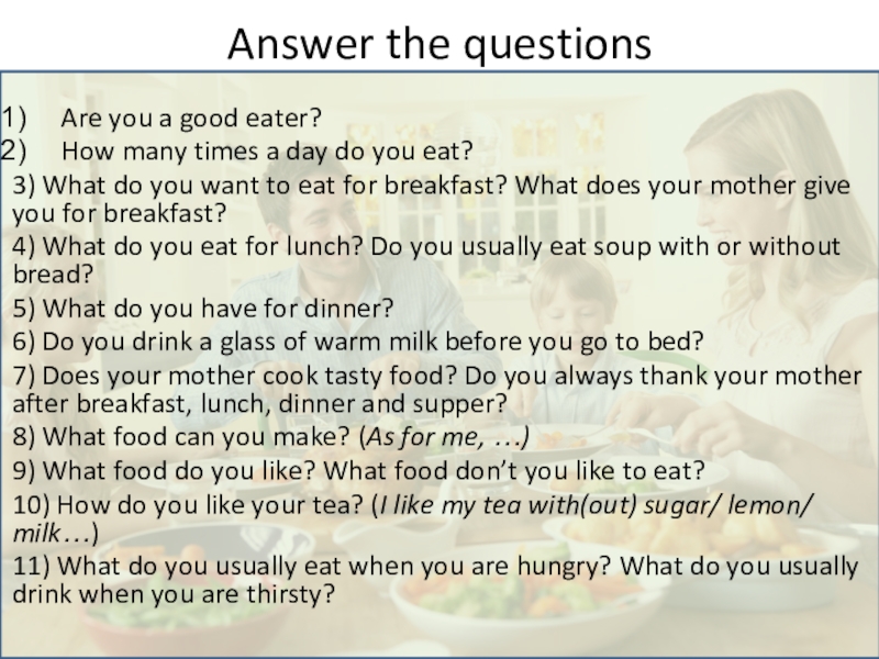 7) Does your mother cook tasty food? Do you always thank your mother after breakfast, lunch, dinner and supper?