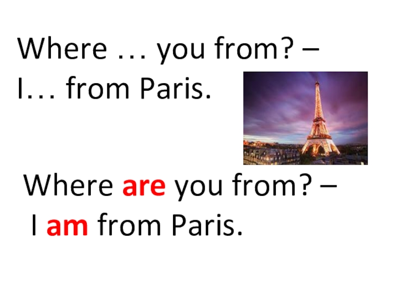 Where … you from? – I… from Paris.Where are you from? – I am from Paris.