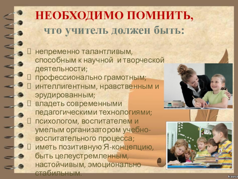 Слайд 34НЕОБХОДИМО ПОМНИТЬ, что учитель должен быть:
