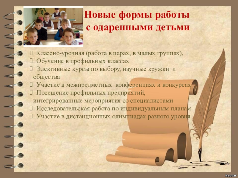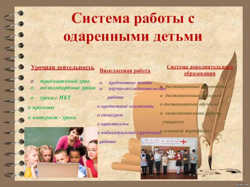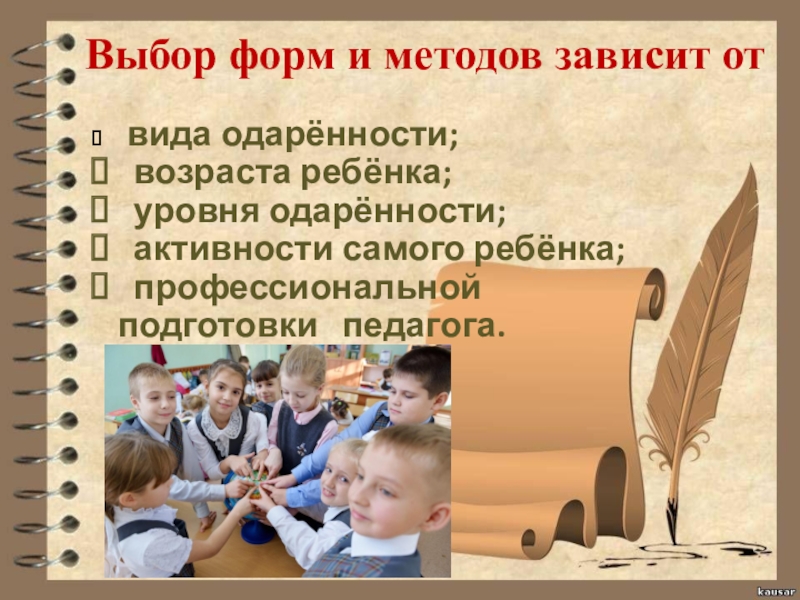возможных форм, приемов, методов и способов работы с одаренными детьми