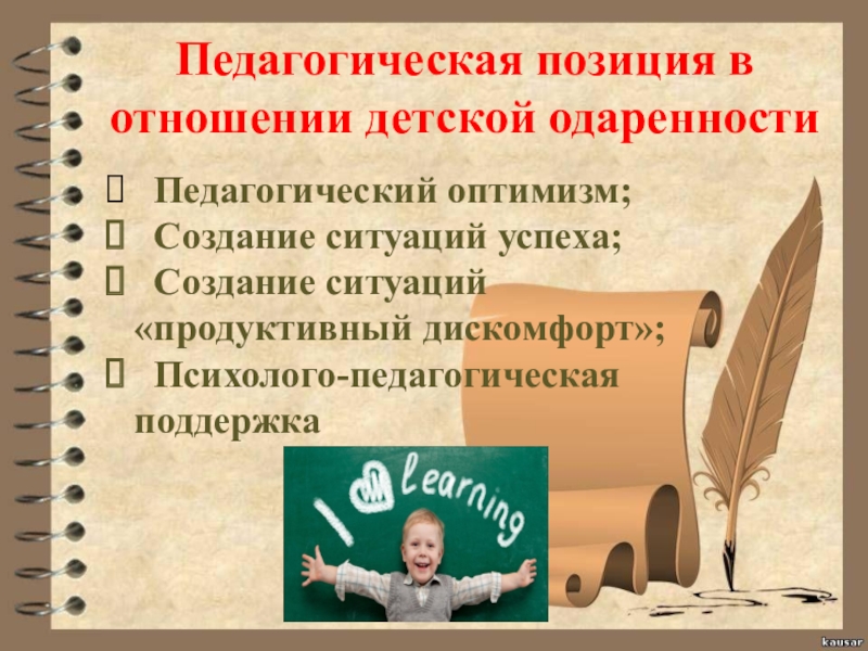 Слайд 26Педагогическая позиция в отношении детской одаренности