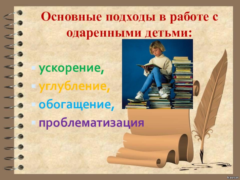 Слайд 14Основные подходы в работе с одаренными детьми: