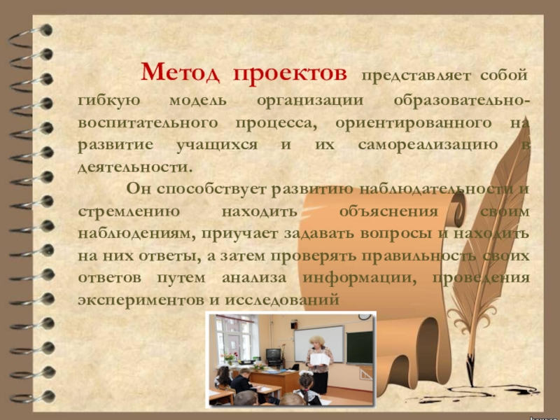 Слайд 17 Метод проектов представляет собой гибкую модель организации образовательно-воспитательного
