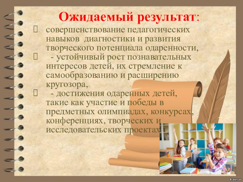 - достижения одаренных детей, такие как участие и победы в предметных олимпиадах, конкурсах, конференциях, творческих и исследовательских проектах.