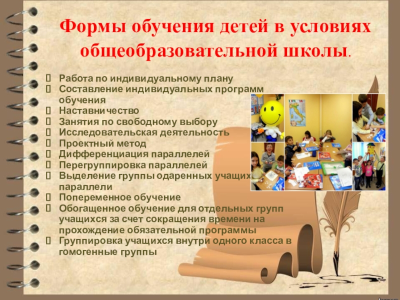 Слайд 27Формы обучения детей в условиях общеобразовательной школы.