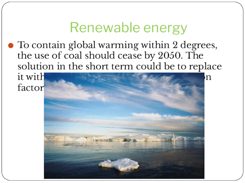 coal should cease by 2050. The solution in the short term could be to replace it with shale gas, which has a CO2 emission factor of half.