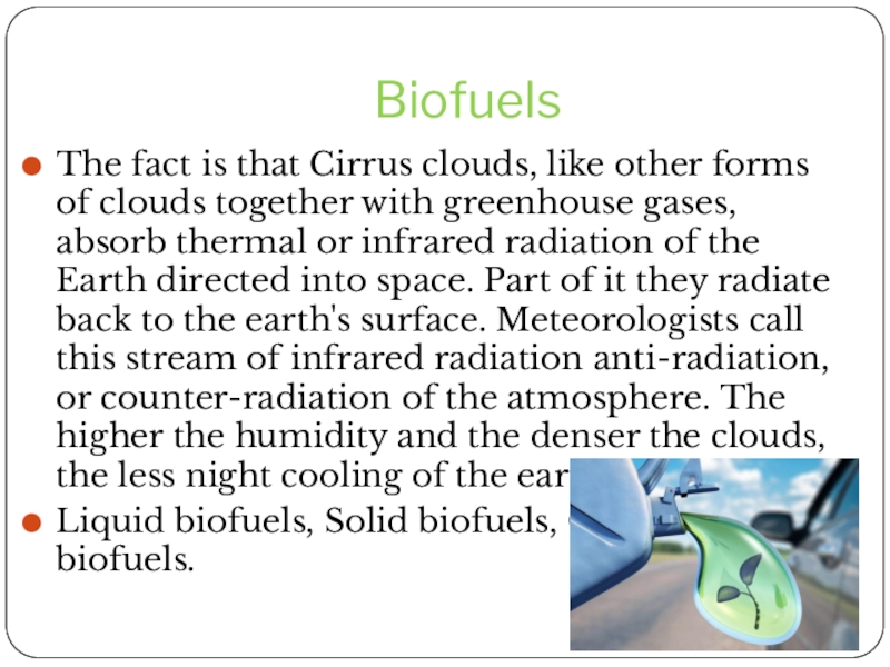 Liquid biofuels, Solid biofuels, Gaseous biofuels.