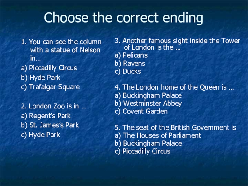 4. The London home of the Queen is …