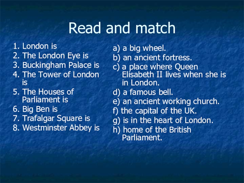 g) is in the heart of London.