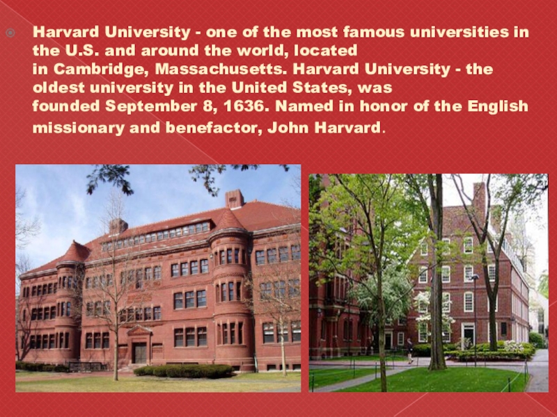 Слайд 3Harvard University - one of the most famous universities in the U.S. and around the