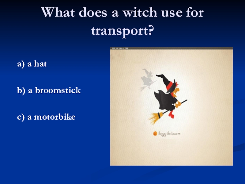 What does a witch use for transport?  a) a hat b) a broomstick c) a motorbike