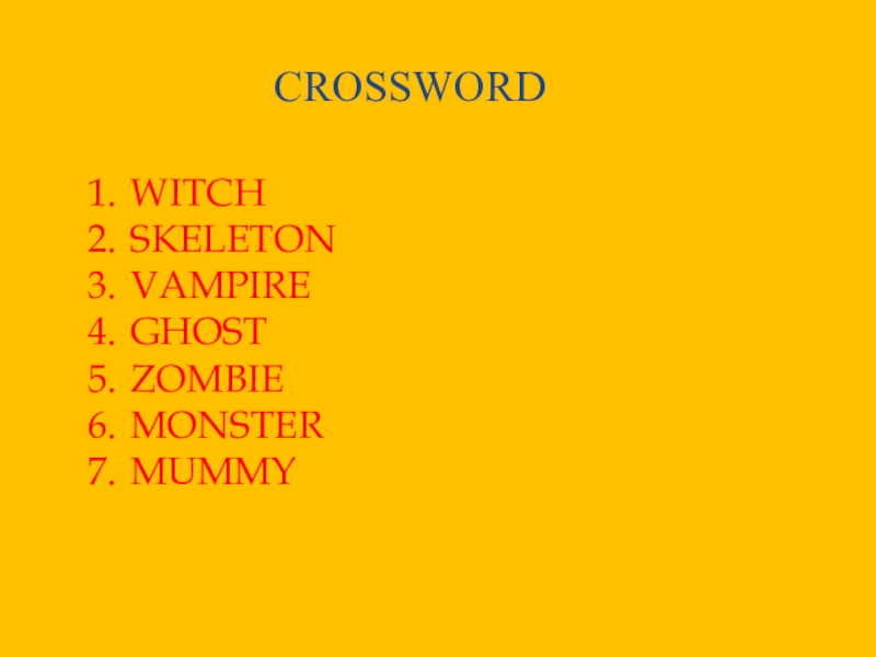CROSSWORDWITCHSKELETONVAMPIREGHOSTZOMBIEMONSTERMUMMY