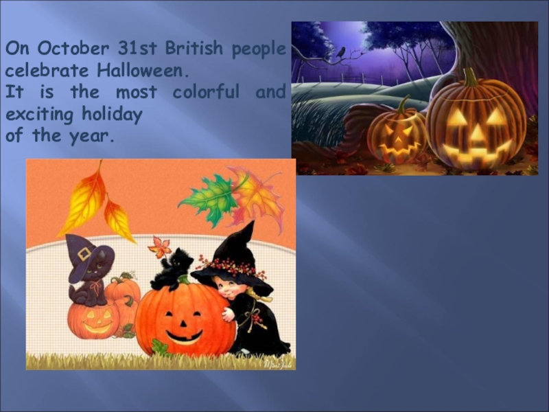 Слайд 2On October 31st British people celebrate Halloween.