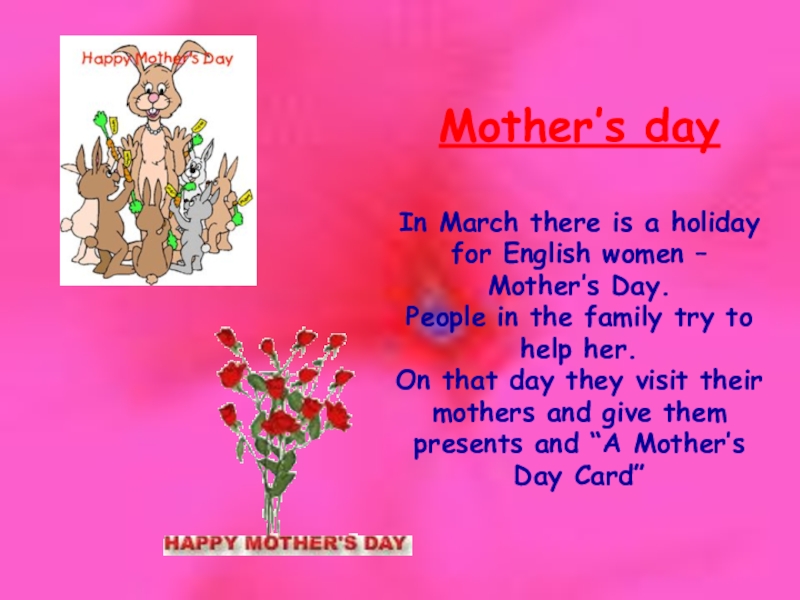 Mother’s dayIn March there is a holiday for English women – Mother’s Day. People in the family