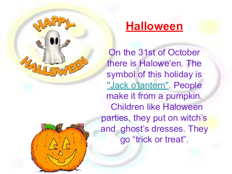 HalloweenOn the 31st of October there is Halowe’en. The symbol of this holiday is