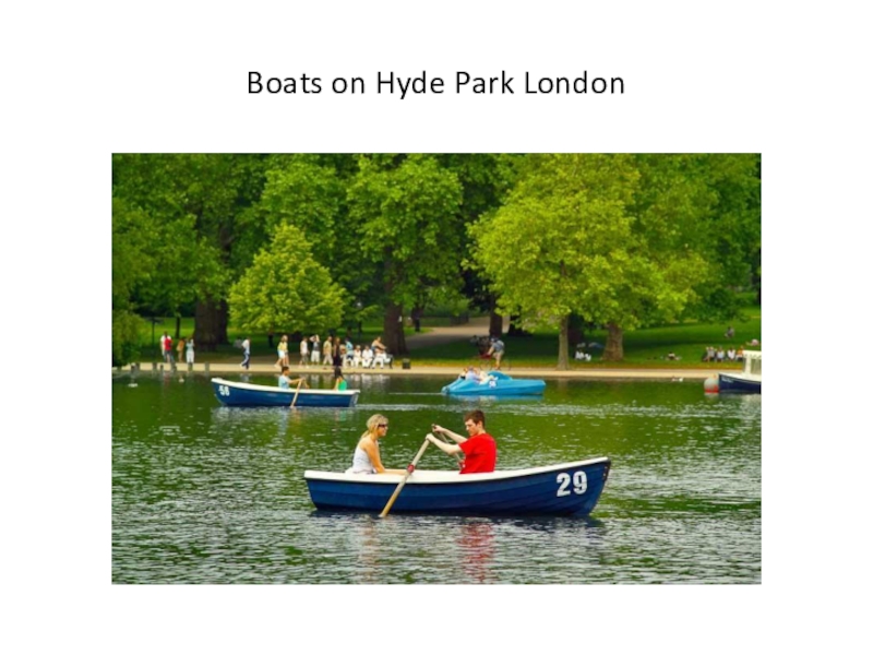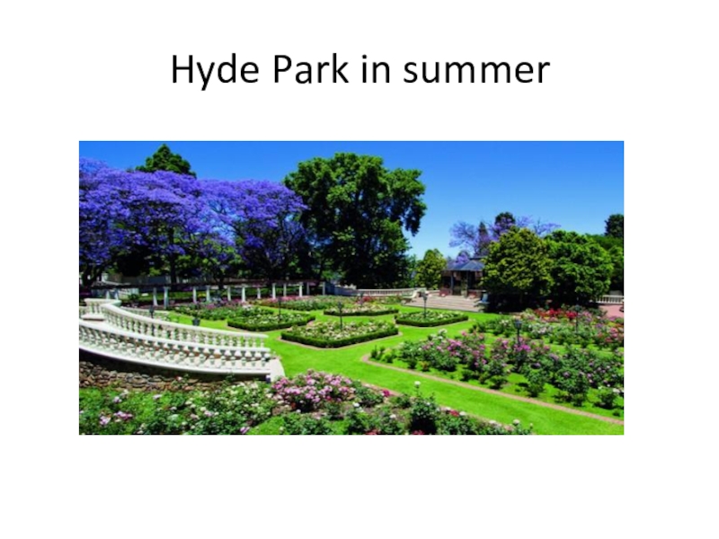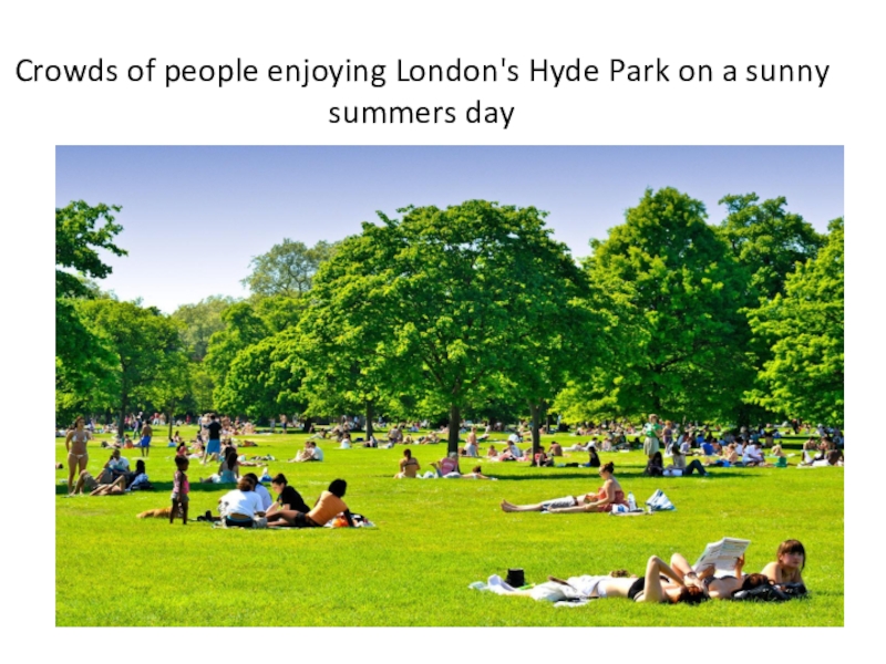 Слайд 6Crowds of people enjoying London's Hyde Park on a sunny summers day