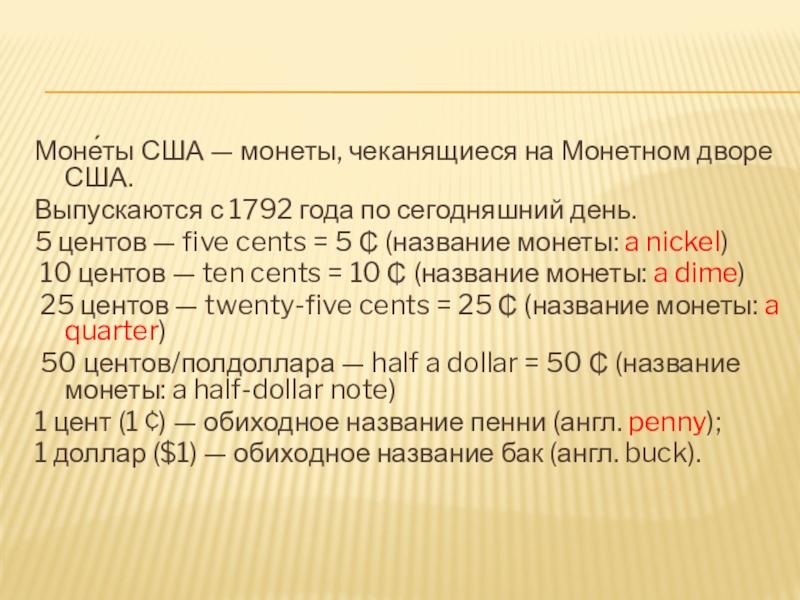 Слайд 25Моне́ты США — монеты, чеканящиеся на Монетном дворе США.
