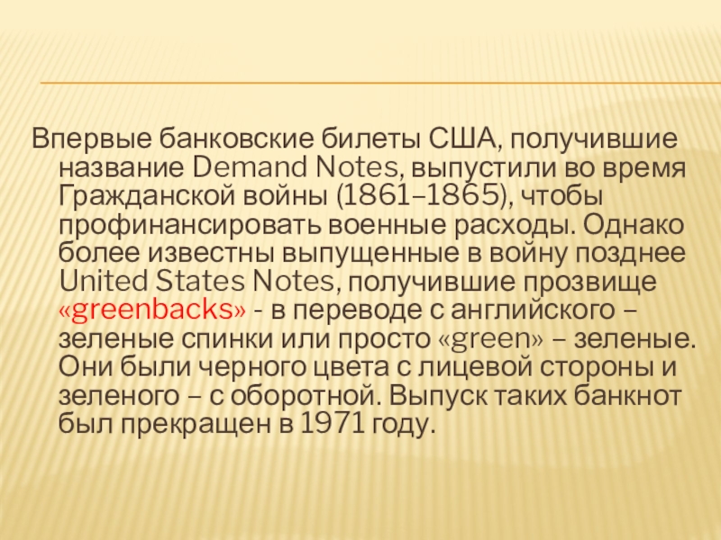 Слайд 22Впервые банковские билеты США, получившие название Demand Notes, выпустили во время