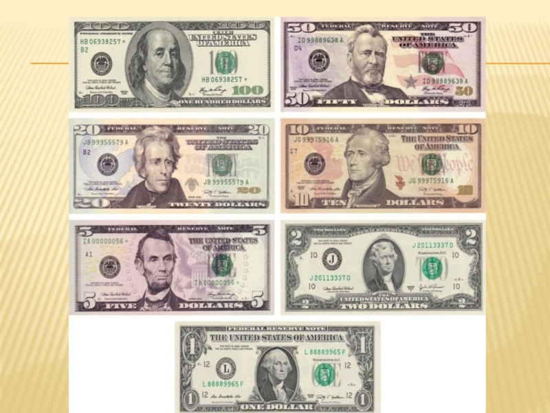 Слайд 13ПОРТРЕТЫ НА БАНКНОТАХ