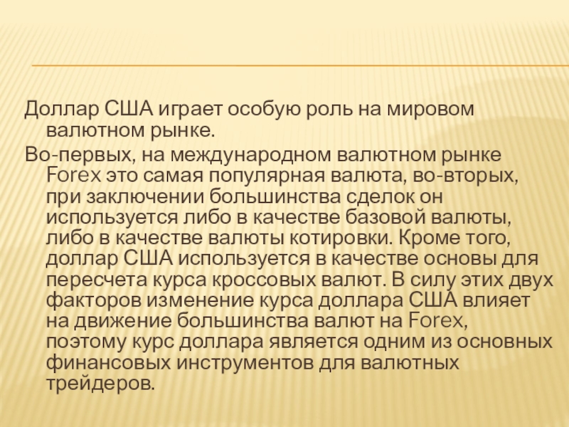 Слайд 30Доллар США играет особую роль на мировом валютном рынке.