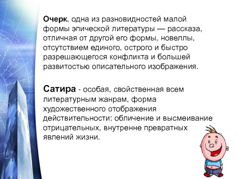Сатира - особая, свойственная всем литературным жанрам, форма художественного отображения действительности: обличение и высмеивание отрицательных, внутренне превратных явлений жизни.