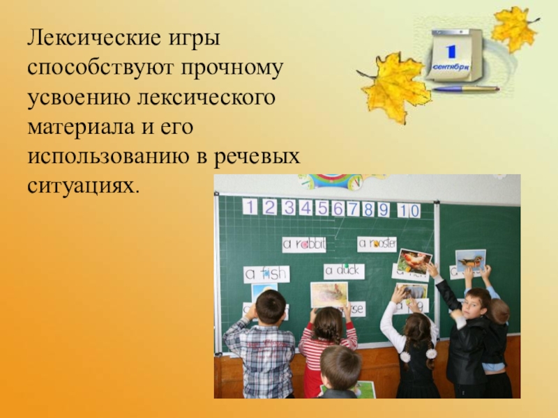 Слайд 14Лексические игры способствуют прочному усвоению лексического материала и его использованию в