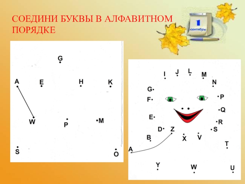 Слайд 24СОЕДИНИ БУКВЫ В АЛФАВИТНОМ ПОРЯДКЕ