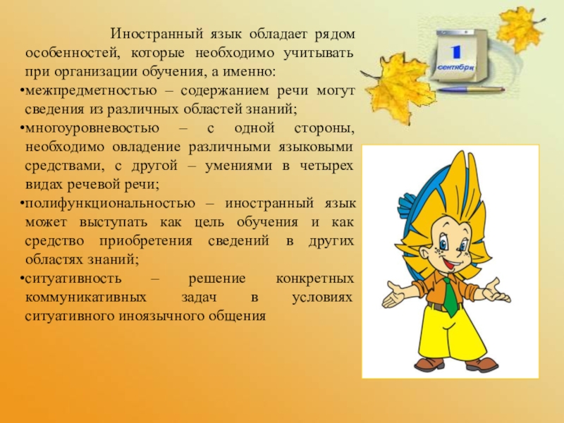 Слайд 4 Иностранный язык обладает рядом особенностей,