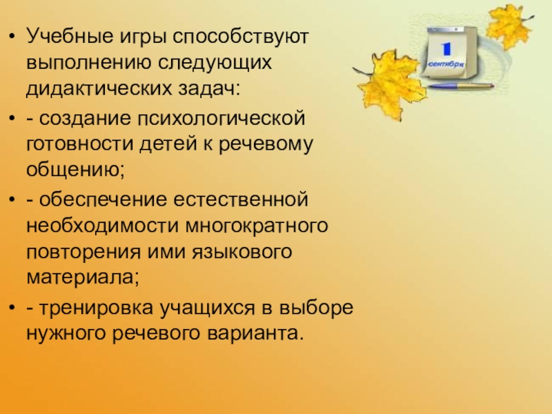 Слайд 8Учебные игры способствуют выполнению следующих дидактических задач:
