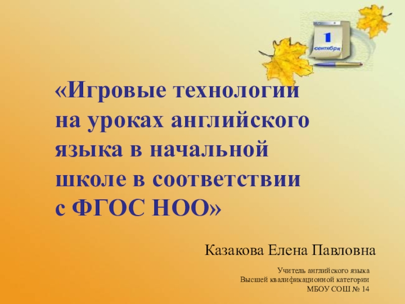 Слайд 1«Игровые технологии на уроках английского языка в начальной школе в соответствии