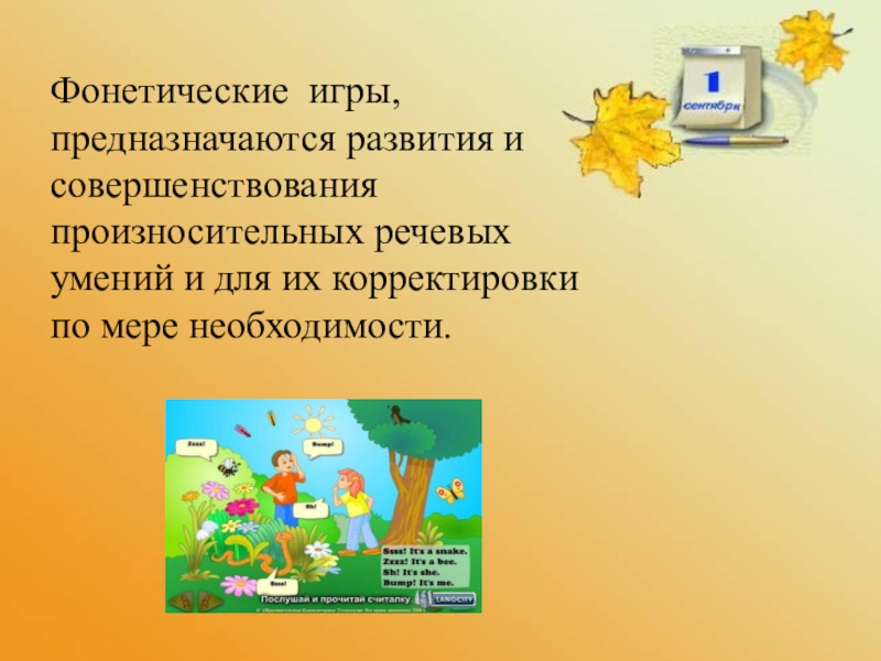 Слайд 12Фонетические игры, предназначаются развития и совершенствования произносительных речевых умений и для