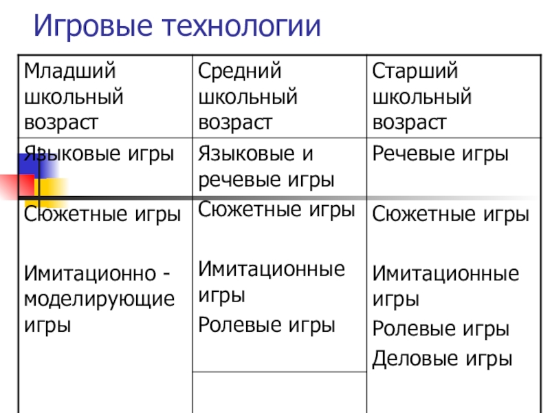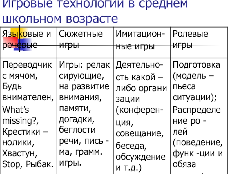Слайд 3Игровые технологии в среднем школьном возрасте