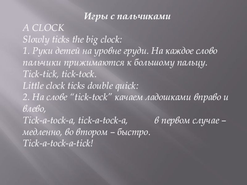 2. На слове “tick-tock” качаем ладошками вправо и влево,