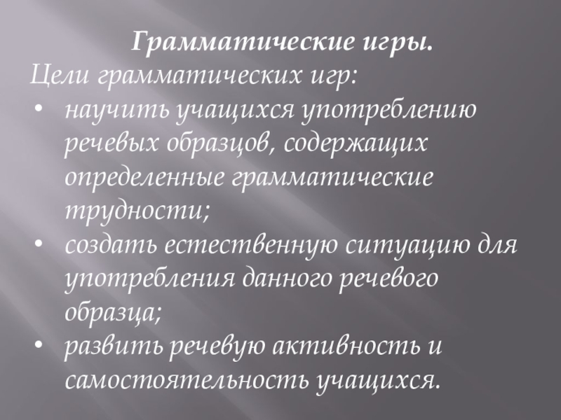 научить учащихся употреблению речевых образцов, содержащих определенные