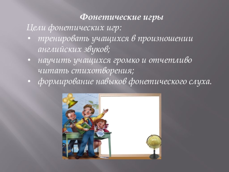 Игры служат развитию всех видов речевой деятельности и проводятся на иностранном языке.