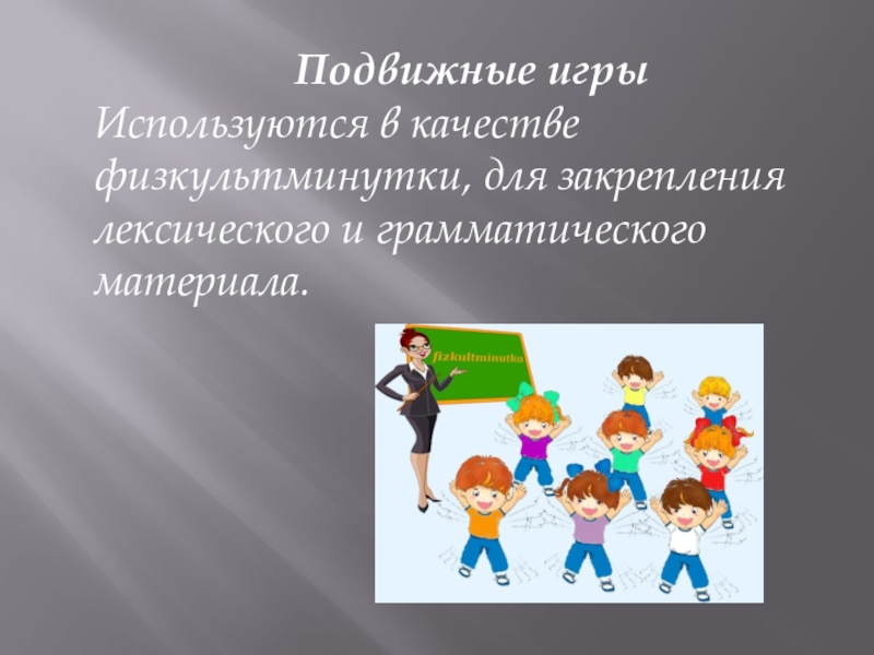 Используются в качестве физкультминутки, для закрепления лексического и грамматического материала.