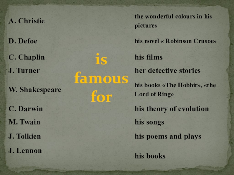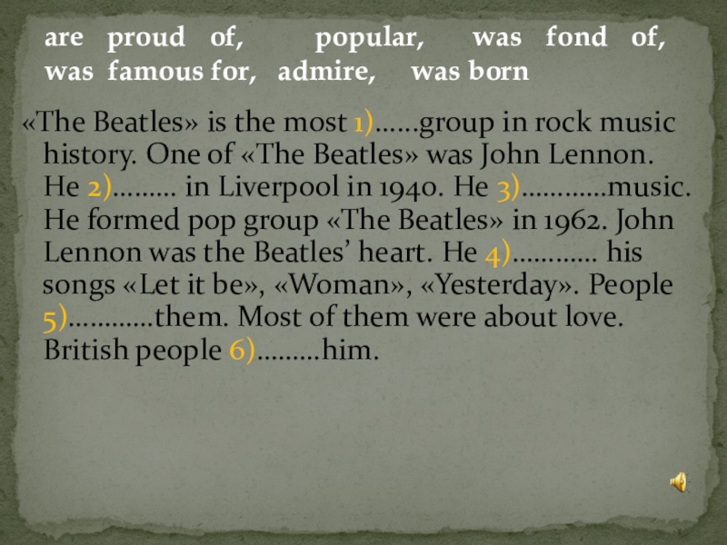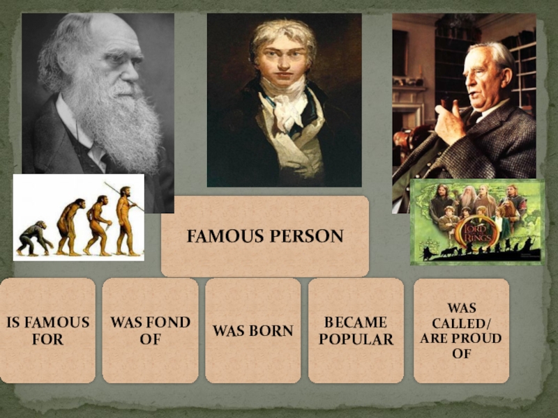 are proud of, popular, was fond of, was famous for, admire, was born