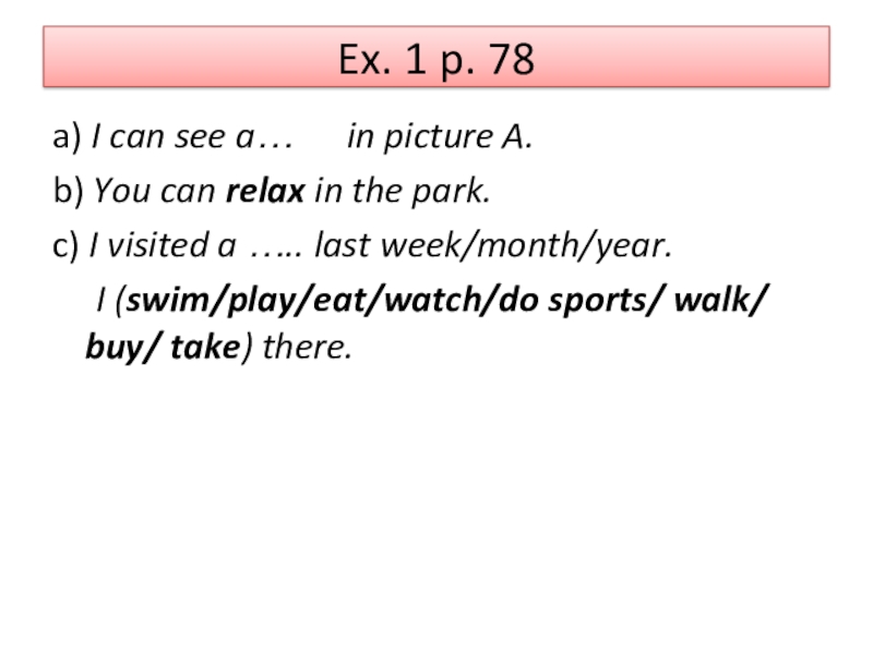 Ex. 1 p. 78a) I can see a…   in picture A. b) You can relax