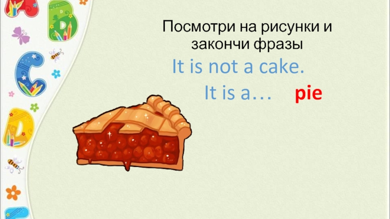 Посмотри на рисунки и закончи фразыIt is not a cake. It is a…pie