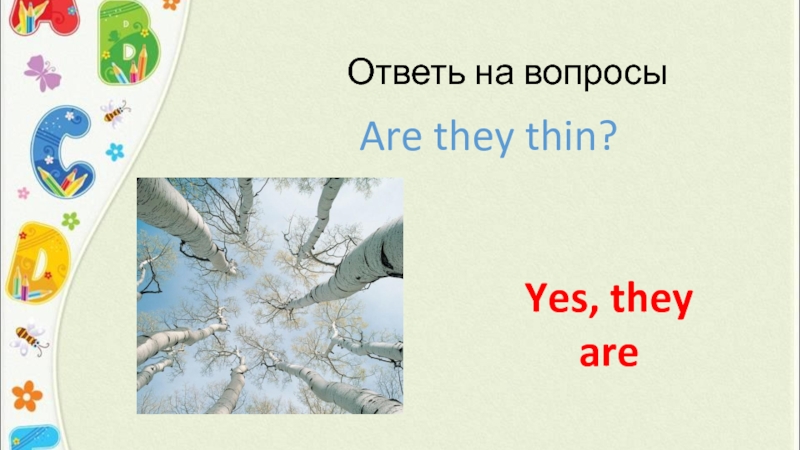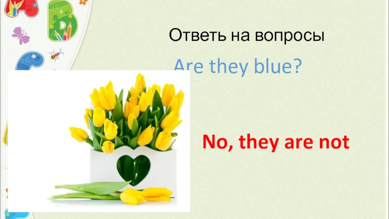 Ответь на вопросыAre they blue?No, they are not