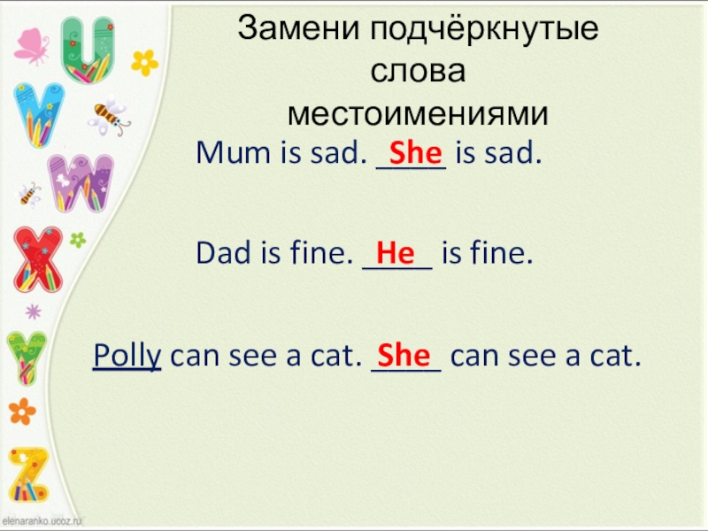 Polly can see a cat. ____ can see a cat.