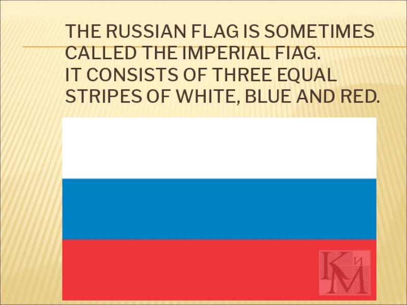 Слайд 4THE RUSSIAN FLAG IS SOMETIMES CALLED THE IMPERIAL FIAG.
