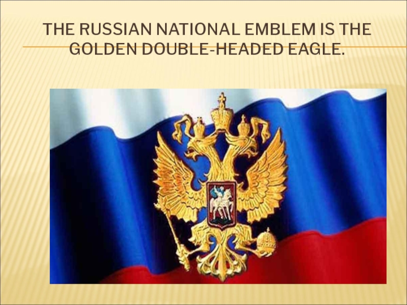 Слайд 5THE RUSSIAN NATIONAL EMBLEM IS THE GOLDEN DOUBLE-HEADED EAGLE.