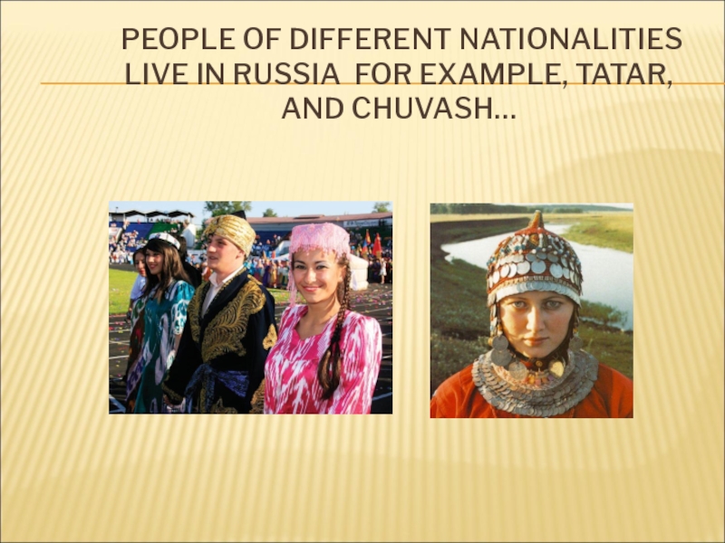 Слайд 7PEOPLE OF DIFFERENT NATIONALITIES LIVE IN RUSSIA FOR EXAMPLE, TATAR, AND