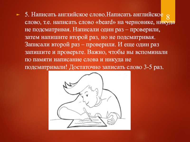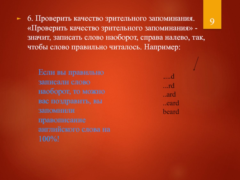 Если вы правильно записали слово наоборот, то можно вас поздравить, вы запомнили правописание английского слова на 100%!