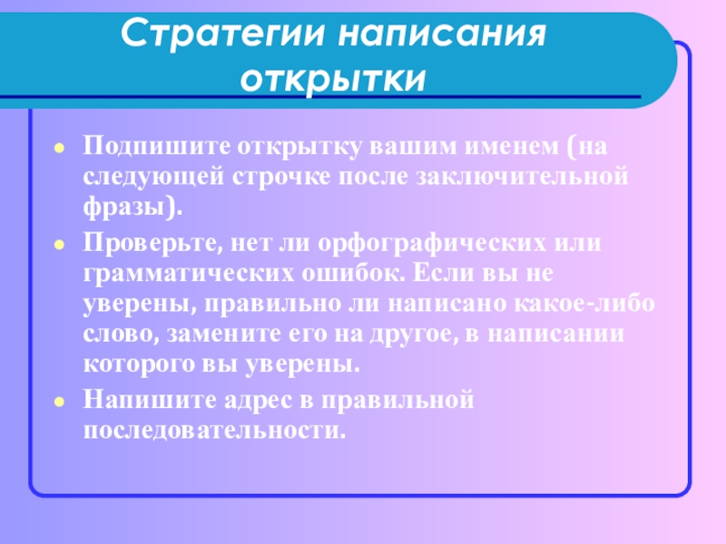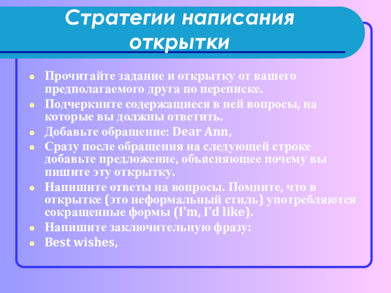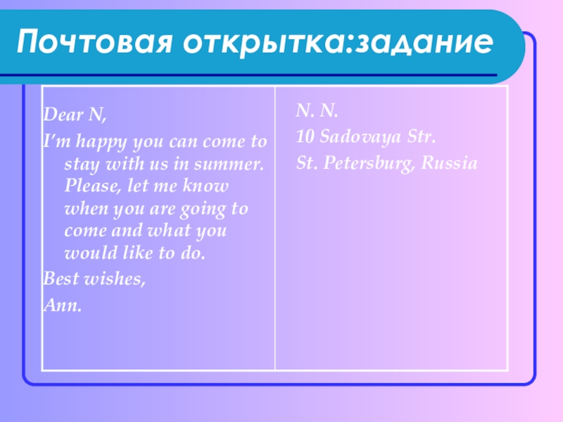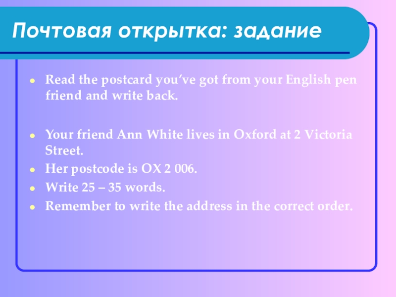 Прочитайте задание и открытку от вашего предполагаемого друга