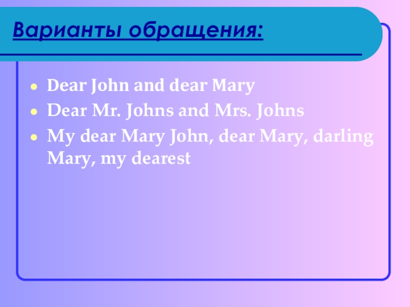 2. Всё обращение пишется не посередине, а на левой стороне без отступа на красную строку.