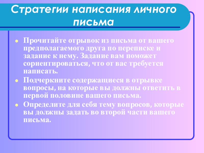 Прочитайте отрывок из письма от вашего предполагаемого друга