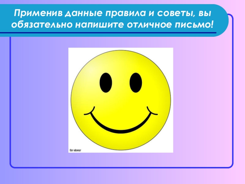 Слайд 23Применив данные правила и советы, вы обязательно напишите отличное письмо!