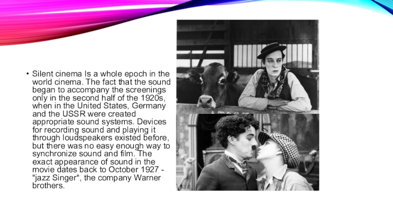 Слайд 5Silent cinema Is a whole epoch in the world cinema. The
